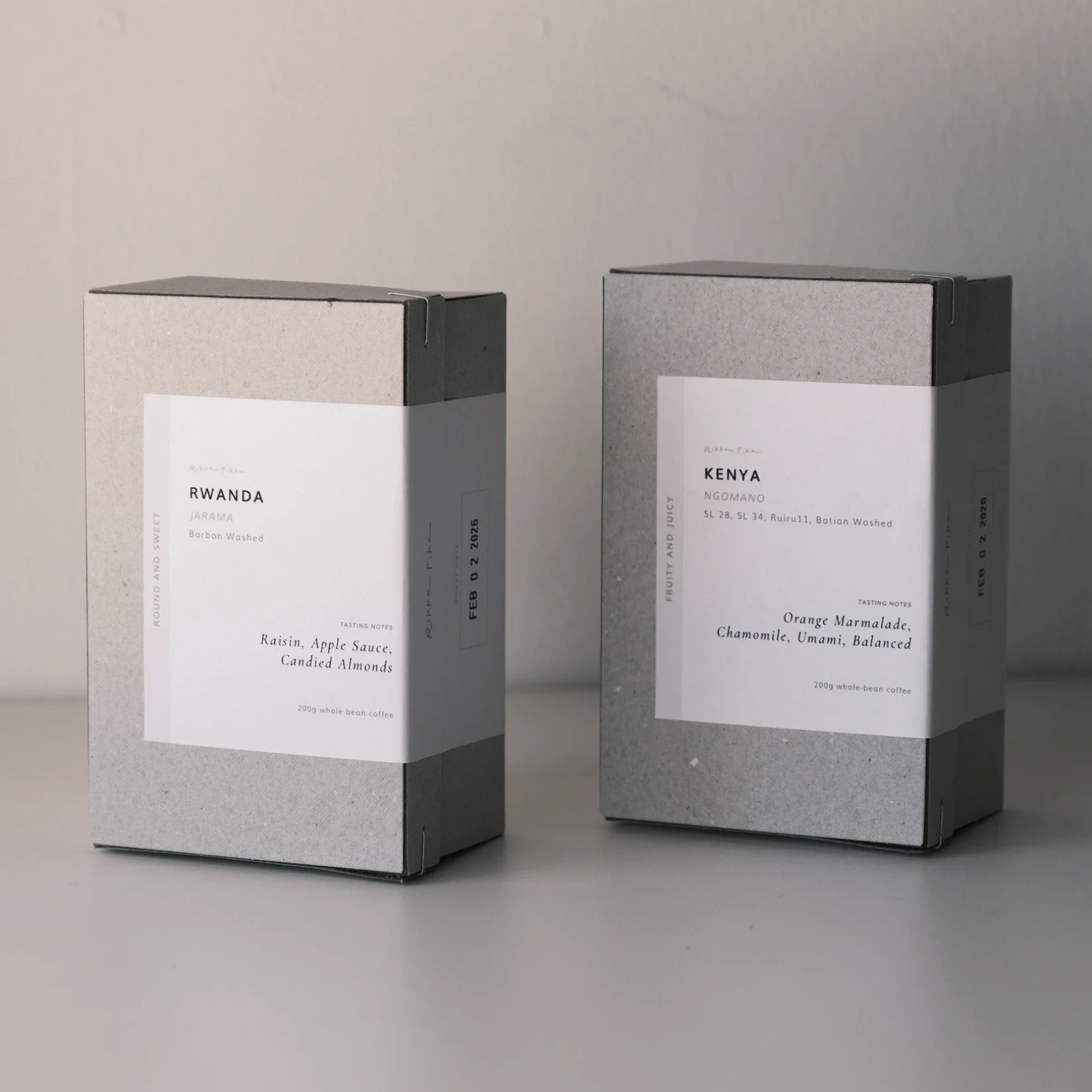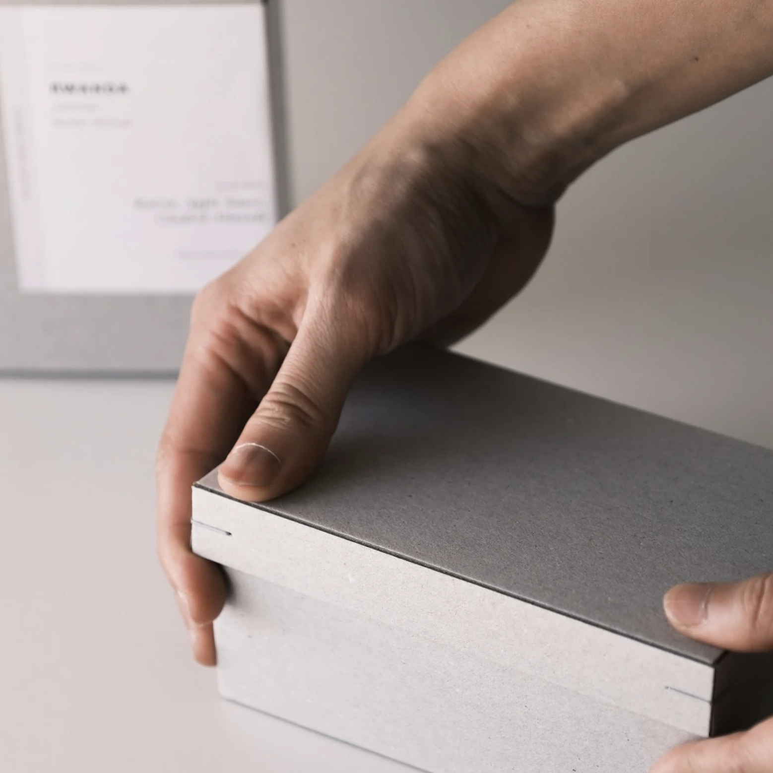This packaging was conceived with sustainability as the starting point. The structure was designed around a corner-stapled construction, allowing the joining method to inform the geometry, proportions, and overall visual presentation. Visible staples led us to explore references beyond conventional coffee packaging, drawing inspiration from jewelry and stationery objects that feel tactile, intentional, and enduring. The form was approached as a small treasure chest, inviting anticipation and turning the act of opening into part of the coffee ritual.