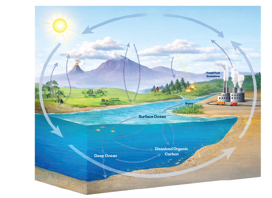 Within the carbon cycle, plants, including coffee and shade trees, absorb carbon dioxide and store it as biomass. When trees are cut down or plants are removed, that stored carbon is released back into the carbon cycle and can reach the atmosphere as carbon dioxide. Image credit: National Oceanic and Atmospheric Association, https://www.noaa.gov/education/resource-collections/climate/carbon-cycle.