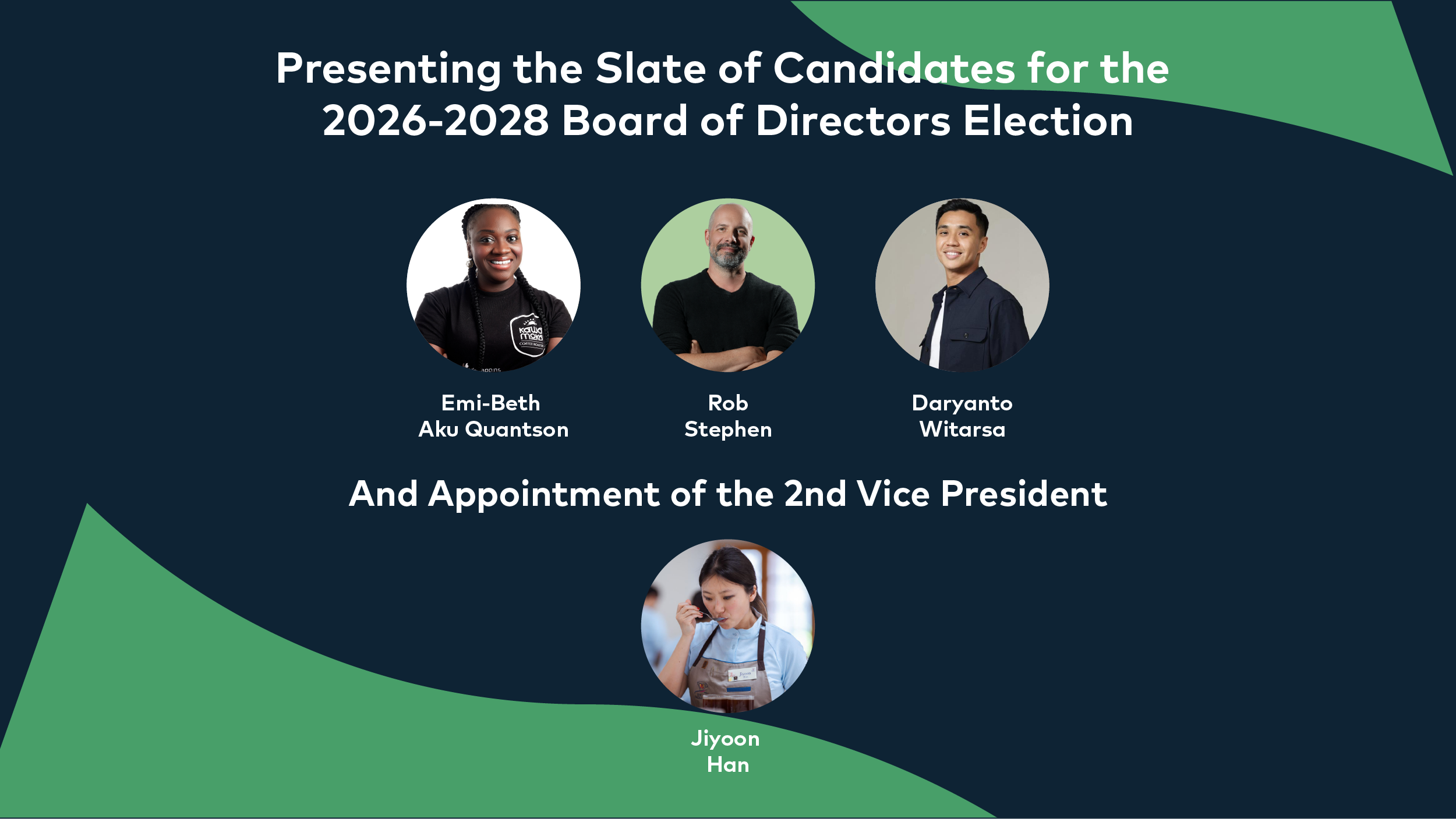 As always, thank you for supporting the work of the Specialty Coffee Association and for taking part in this process to elect our leadership. Let’s continue to #makecoffeebetter, together.
