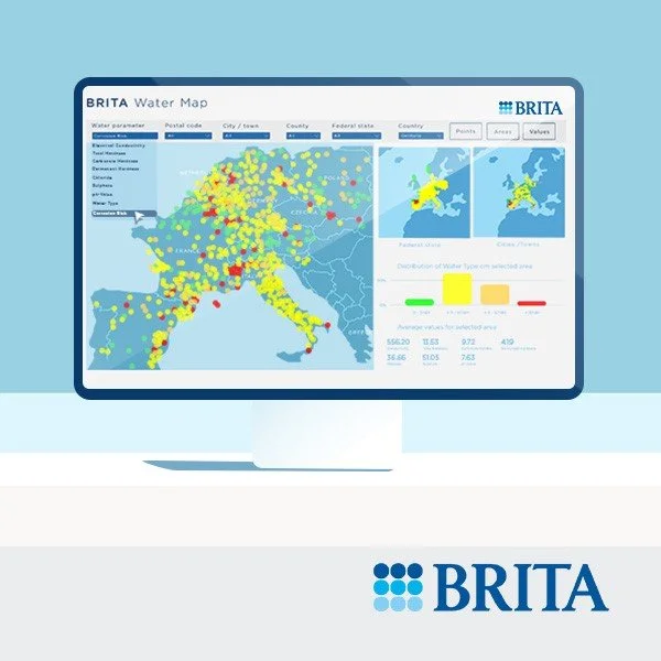 BRITA offers water filtration solutions for every need. Knowledge of the water quality is an essential success factor for filtration and is also vital to ensure optimal and individual filter consultancy. Our services now include an evolving water conditions data model which runs across international borders and is operated by dedicated research and development scientists – the BRITA Water Map.